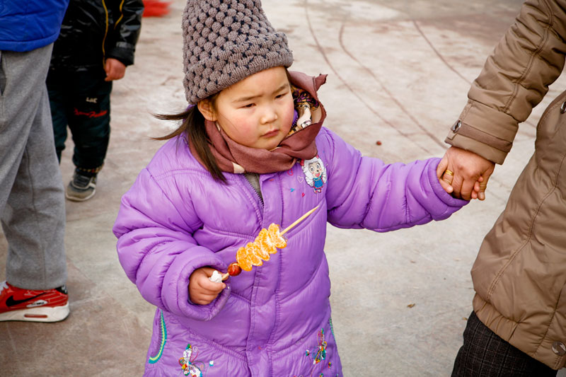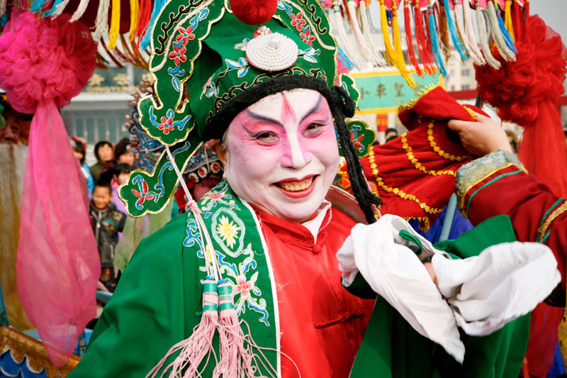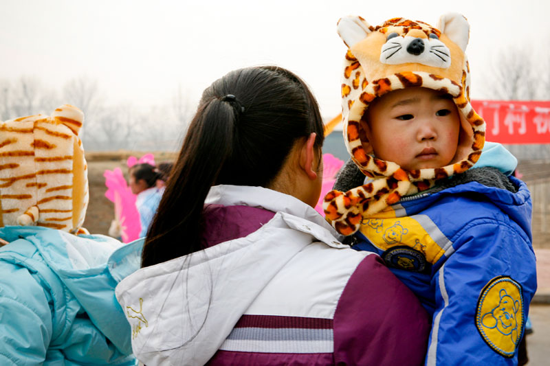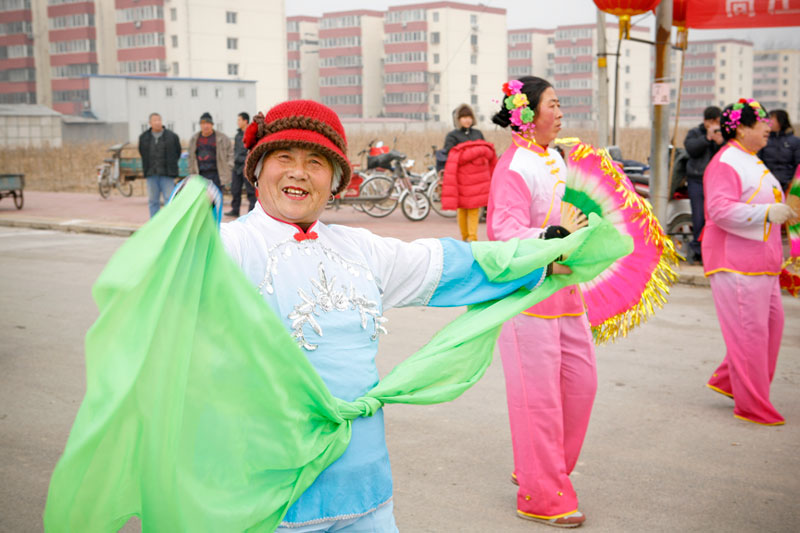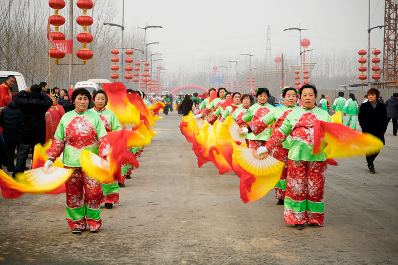 Today people celebrate Lantern Festival in many different ways. These images, captured in a small village outside Beijing, reflect the festival of fifteen small villages. Residents gather to perform, dance, play music, and celebrate the New Year in a community-wide celebration. The most traditional of these performances include the dragon and lion dances, along with fan dances and parades, each done by troupes composed of residents of small neighborhoods. The villagers come adorned in traditional attire representing ancient imperial dynasties while onlookers come to enjoy and participate in the festivities while passing on these traditional Chinese arts to future generations. In light of China's rapid modernization, it is important for these traditions to be passed down to the younger generations, and through community-wide festivals like this, the young are taught the ways of the old.
