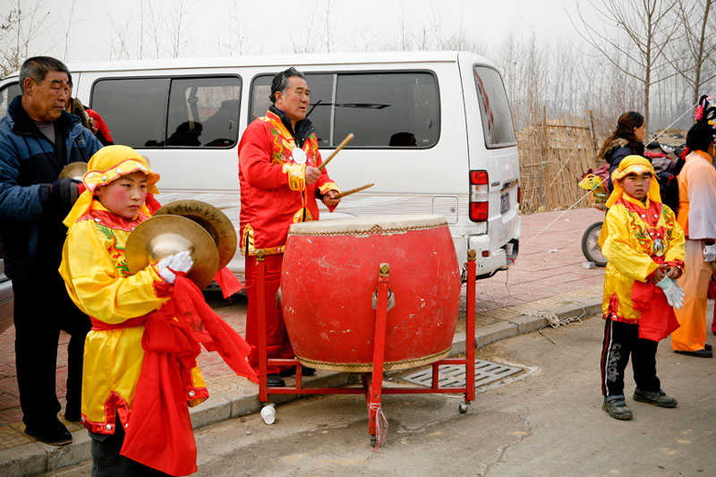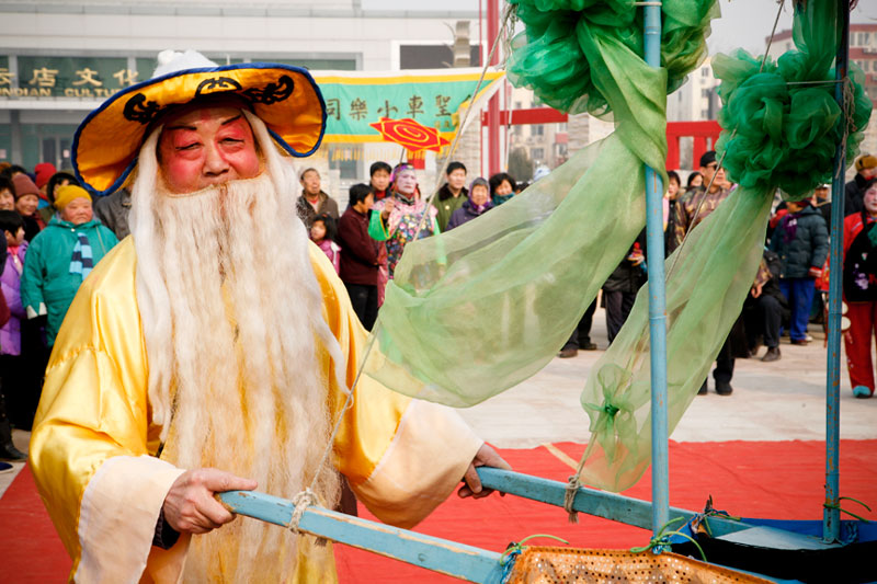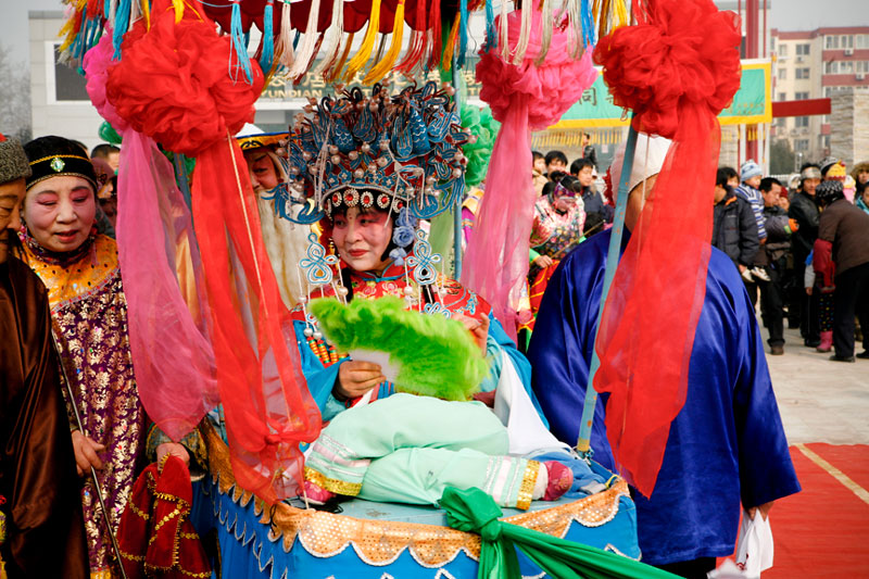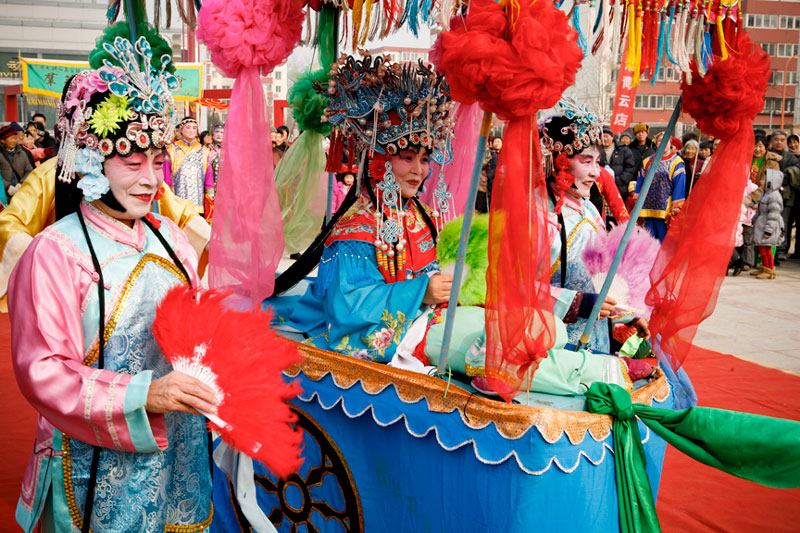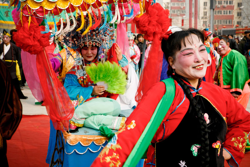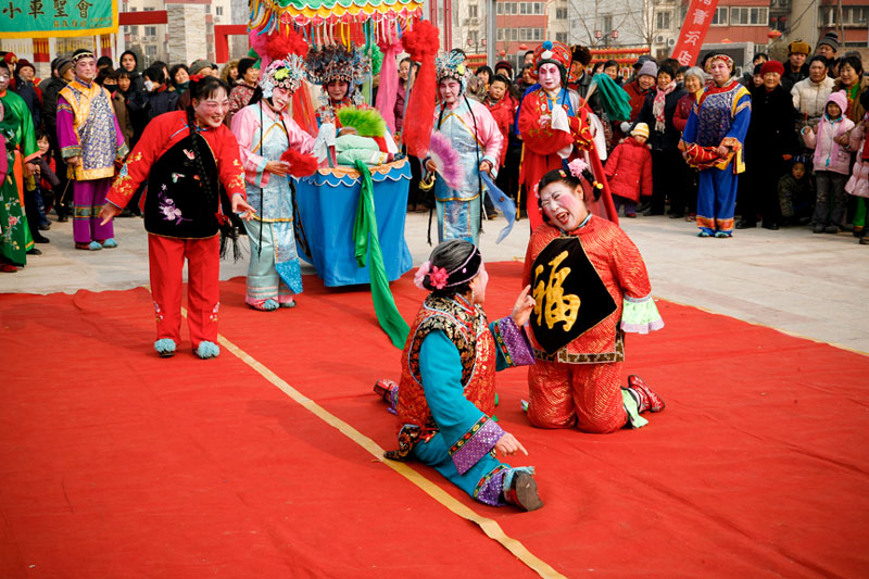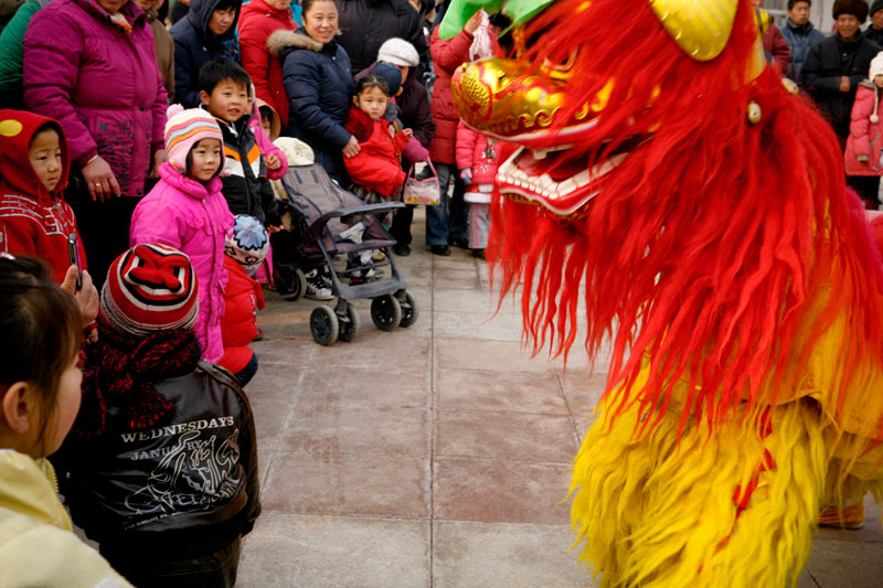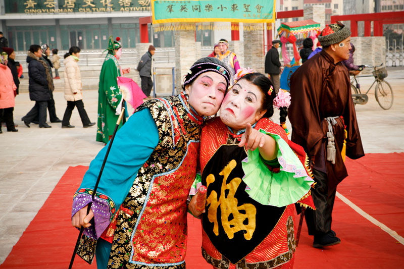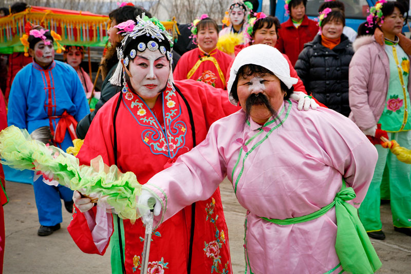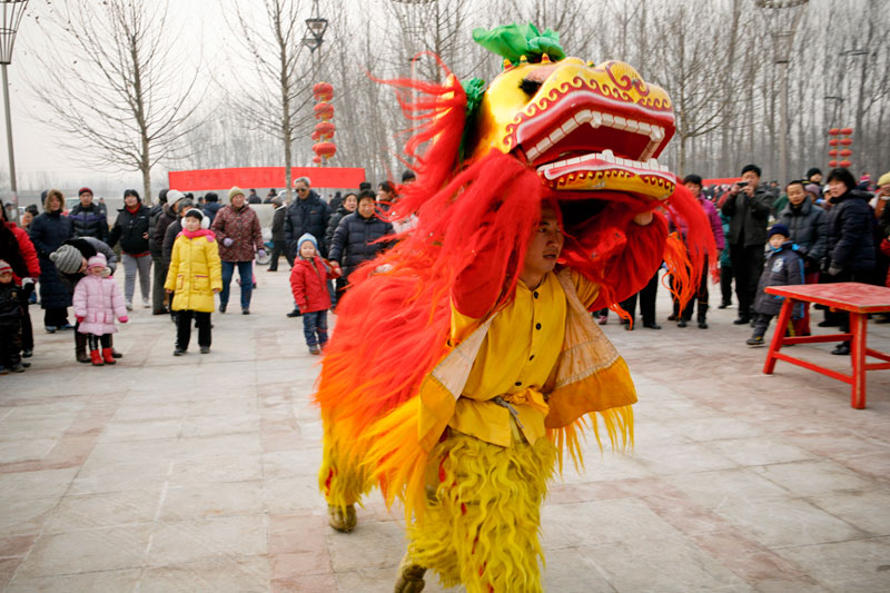 Today people celebrate Lantern Festival in many different ways. These images, captured in a small village outside Beijing, reflect the festival of fifteen small villages. Residents gather to perform, dance, play music, and celebrate the New Year in a community-wide celebration. The most traditional of these performances include the dragon and lion dances, along with fan dances and parades, each done by troupes composed of residents of small neighborhoods. The villagers come adorned in traditional attire representing ancient imperial dynasties while onlookers come to enjoy and participate in the festivities while passing on these traditional Chinese arts to future generations. In light of China's rapid modernization, it is important for these traditions to be passed down to the younger generations, and through community-wide festivals like this, the young are taught the ways of the old.
