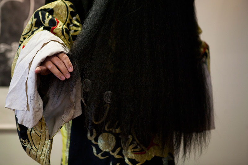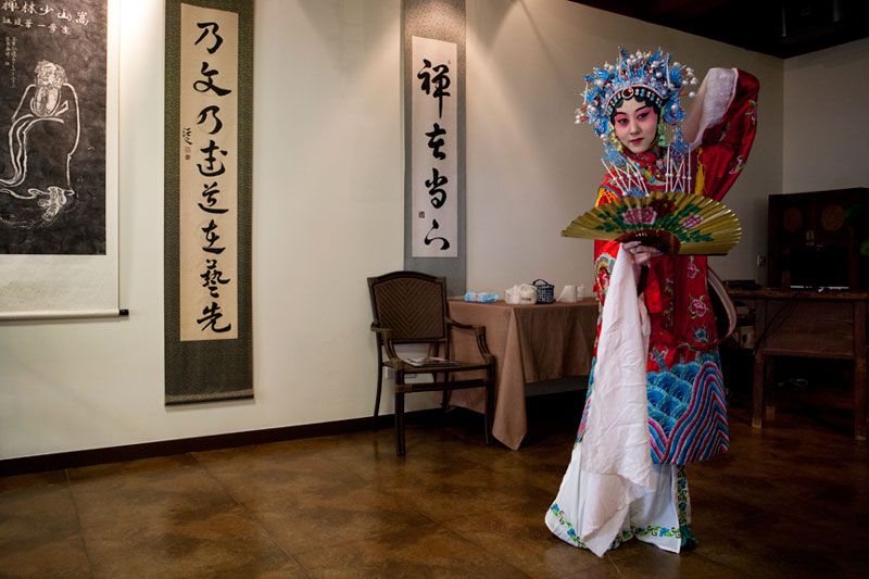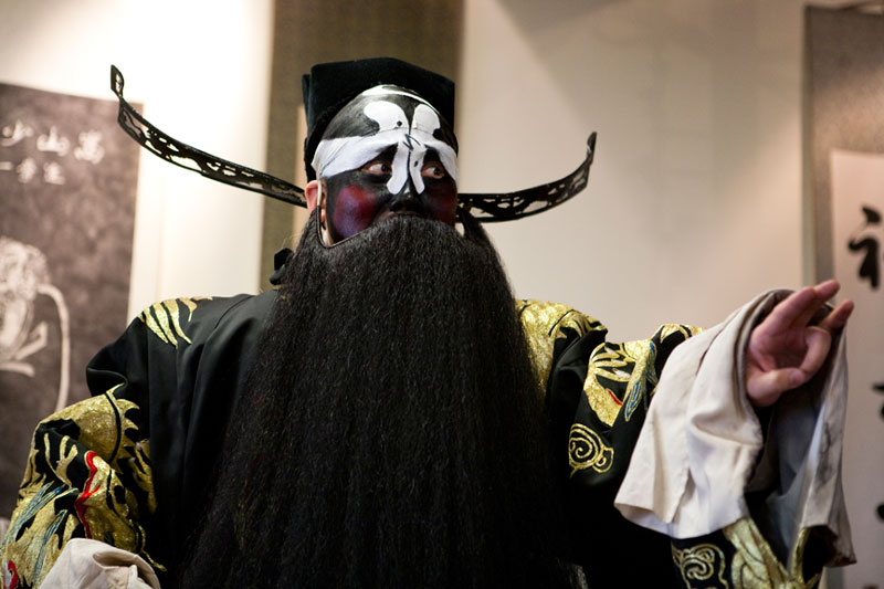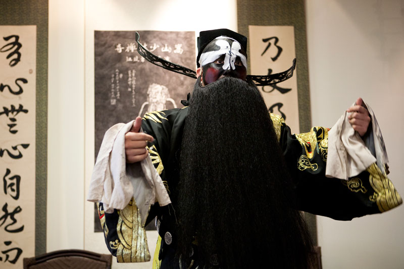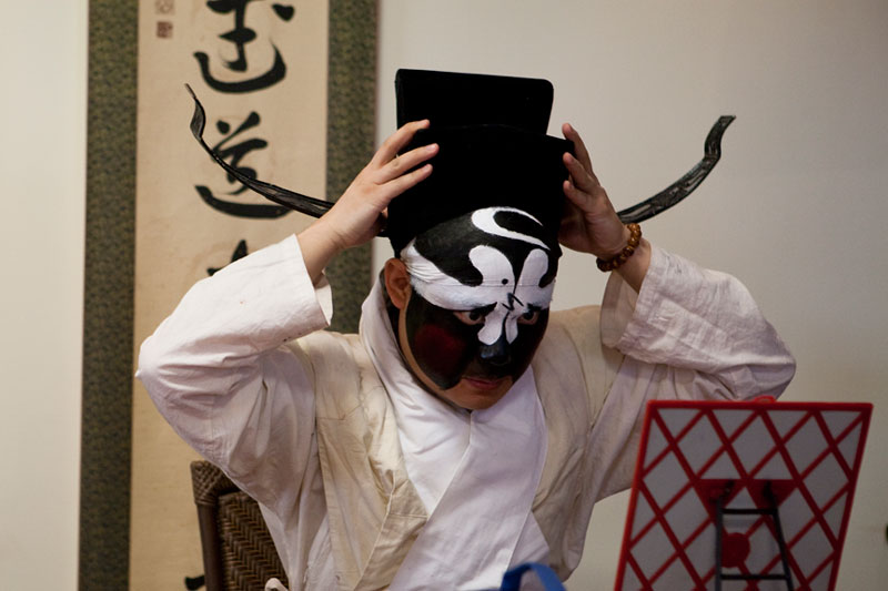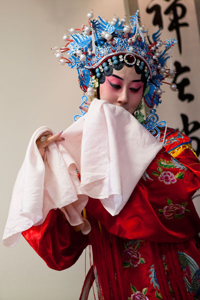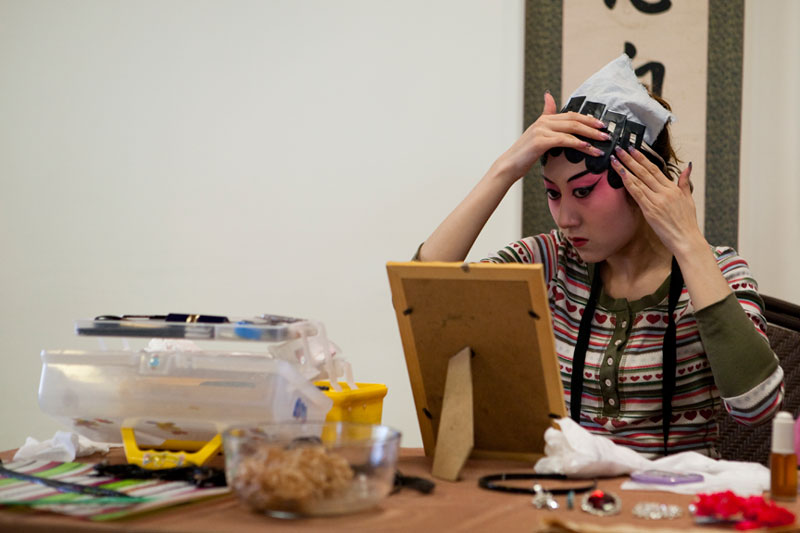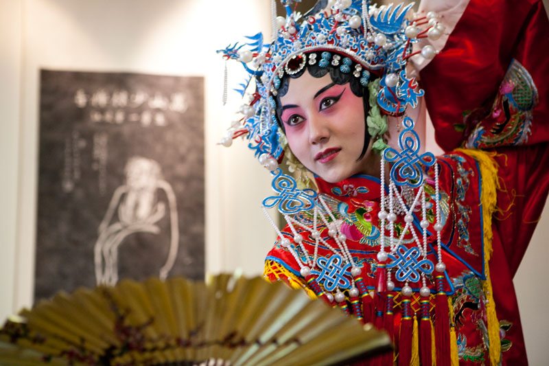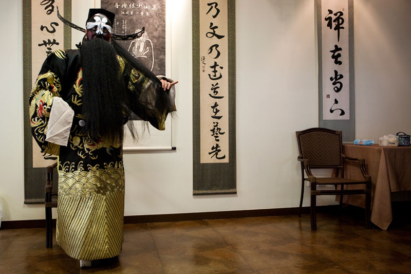 I attended and photographed a Peking Opera workshop designed to help future generations understand and appreciate this ancient custom. The two performers demonstrated the technique of applying their makeup and putting on their costumes in preparation for a performance, and then they demonstrated the Sheng and Dan roles by performing an excerpt from a traditional opera. During their performance, they explained the importance of the gestures, actions, and vocals that are used to enhance the story. In a generation of Chinese youth often obsessed with western culture, Peking Opera is not very popular. But thanks to the dedication of a few individuals committed to its preservation, Peking Opera is gaining renown internationally as troupes travel the world bringing this ancient custom to other countries.